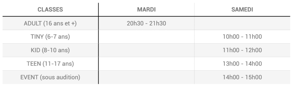 Les cours sont structurés en fonction de l’âge des élèves, et le professeur adapte son enseignement au niveau et au rythme de chacun.